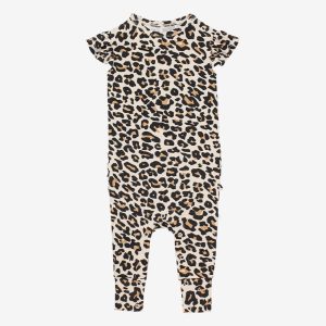 Lana Leopard Tan Ruffled Cap Sleeve Romper