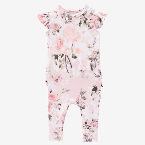 Vintage Pink Rose Ruffled Cap Sleeve Romper