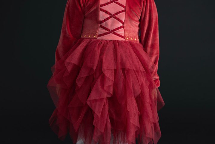 - Placement print detail on bodice and skirt inspired by Disney’s Anna