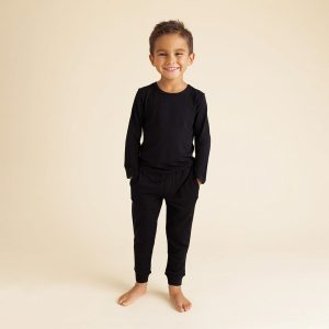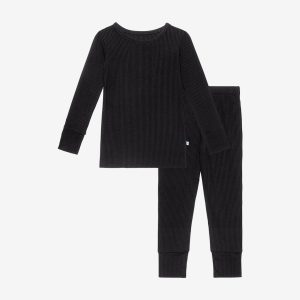 Black Ribbed Classic Pajama Set