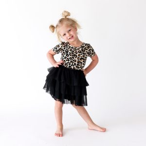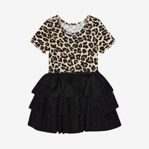 Lana Leopard Tan Short Sleeve Tulle Dress