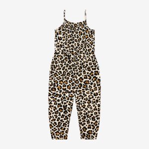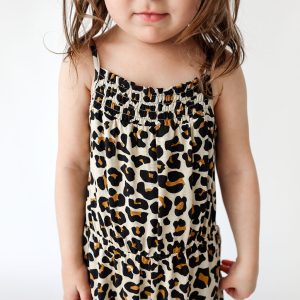 Lana Leopard Tan Sleeveless Smocked Jumpsuit